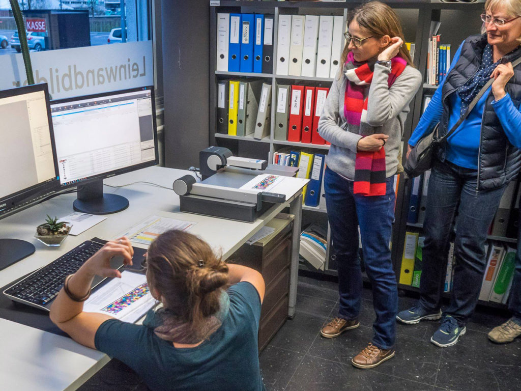 Damit Sie schlussendlich auch sehen, wie unsere 12-Farben-Digitaldrucker drucken, können Sie live bei einen Testdruck dabei sein.