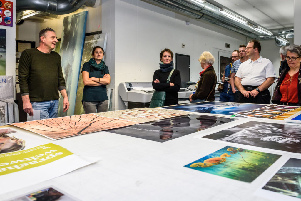 Zurück in unserem Atelier gibt es auch hier noch einige interessante Dinge zu präsentieren. So zeigen wir Ihnen zum Beispiel Drucke, welche wir von Mitbewerbern bestellt haben und vergleichen diese mit unseren Drucken. Die meisten Besucher sind jeweils erstaunt, wie unterschiedlich ein Bild gedruckt werden kann. Die Gründe dafür liegen mehrheitlich beim Druckprozess und dem Colormanagement.