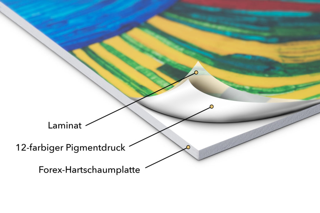 - Kaschierung auf hochweisses, mattes Forex